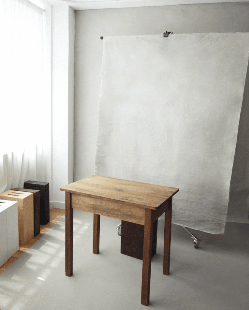 Fondo de color beige o color piedra. Es perfecto para retratos sobre la mesa o plano medio. Perfecto para colores cálidos como blanco, verdes, beige.