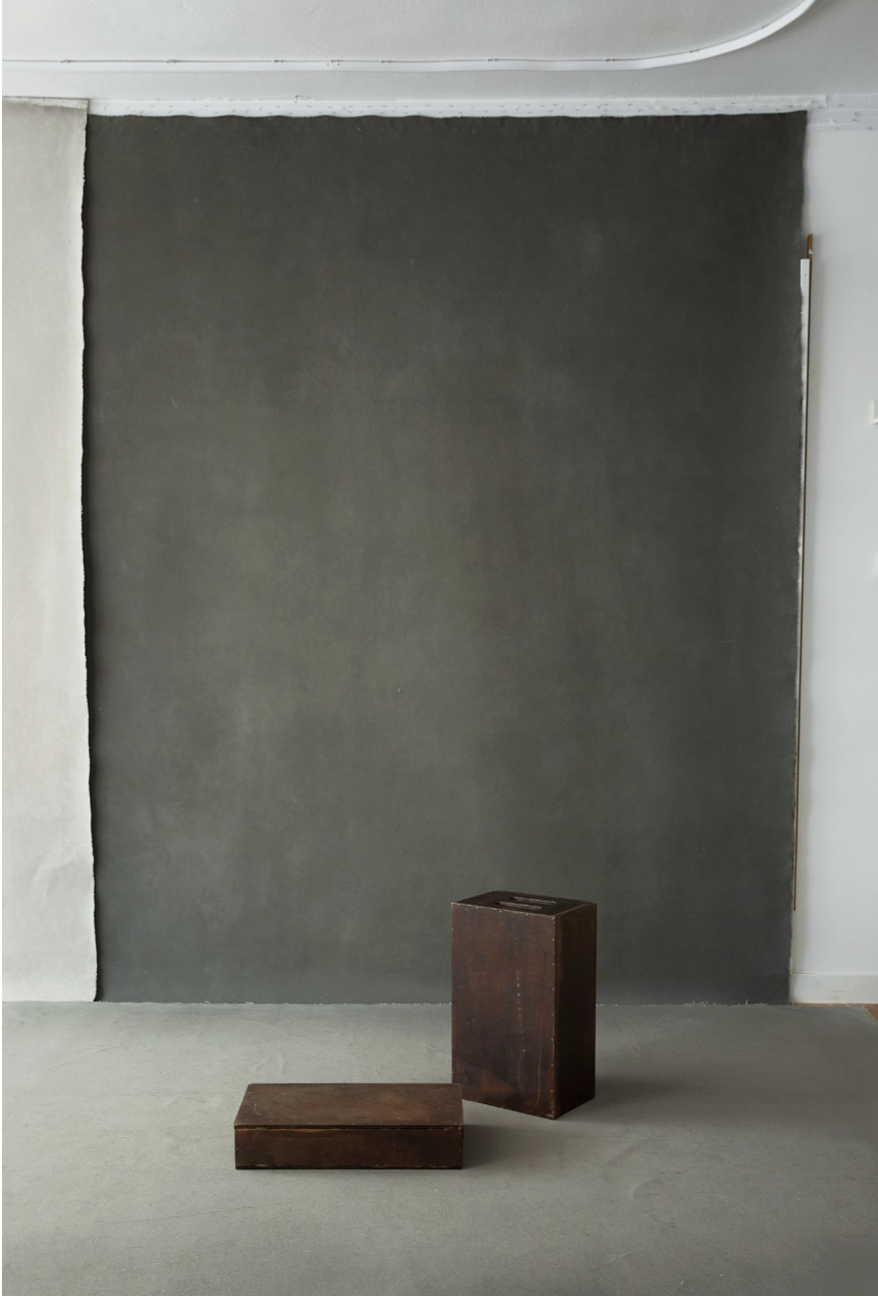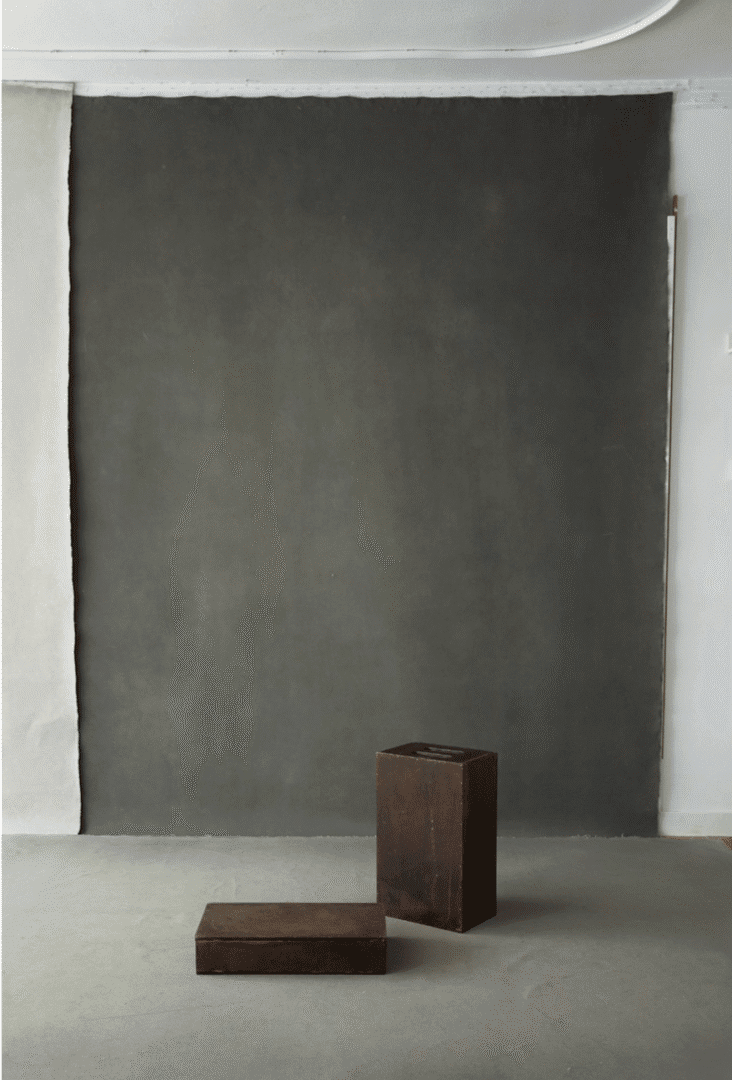 Un fondo pintado con textura en tono gris frío que queda perfecto para blancos, negros y rojos.