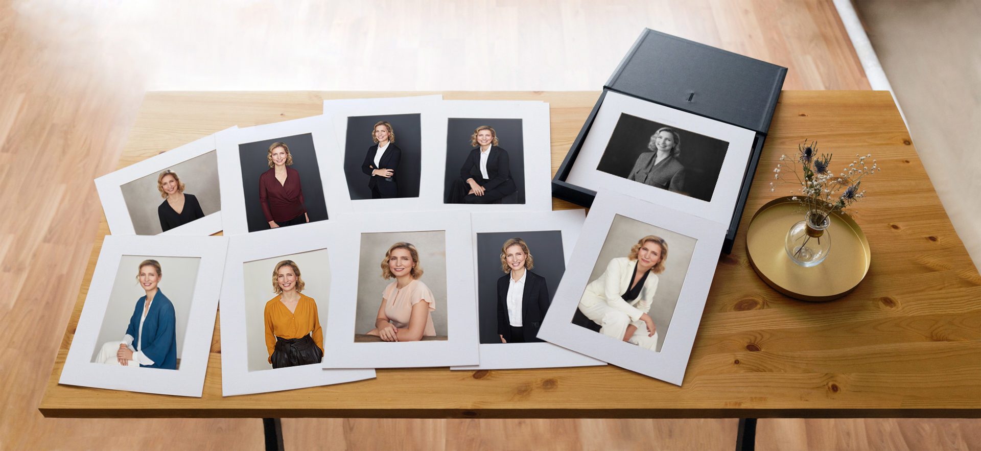 Después de tu sesión, dos semanas después, seleccionaremos cuidadosamente las fotos en las que mejor sales, las editaremos, retocaremos y te las mostraremos en digital y en papel con paspartú. Este es el este momento en que decides qué retratos comprar.